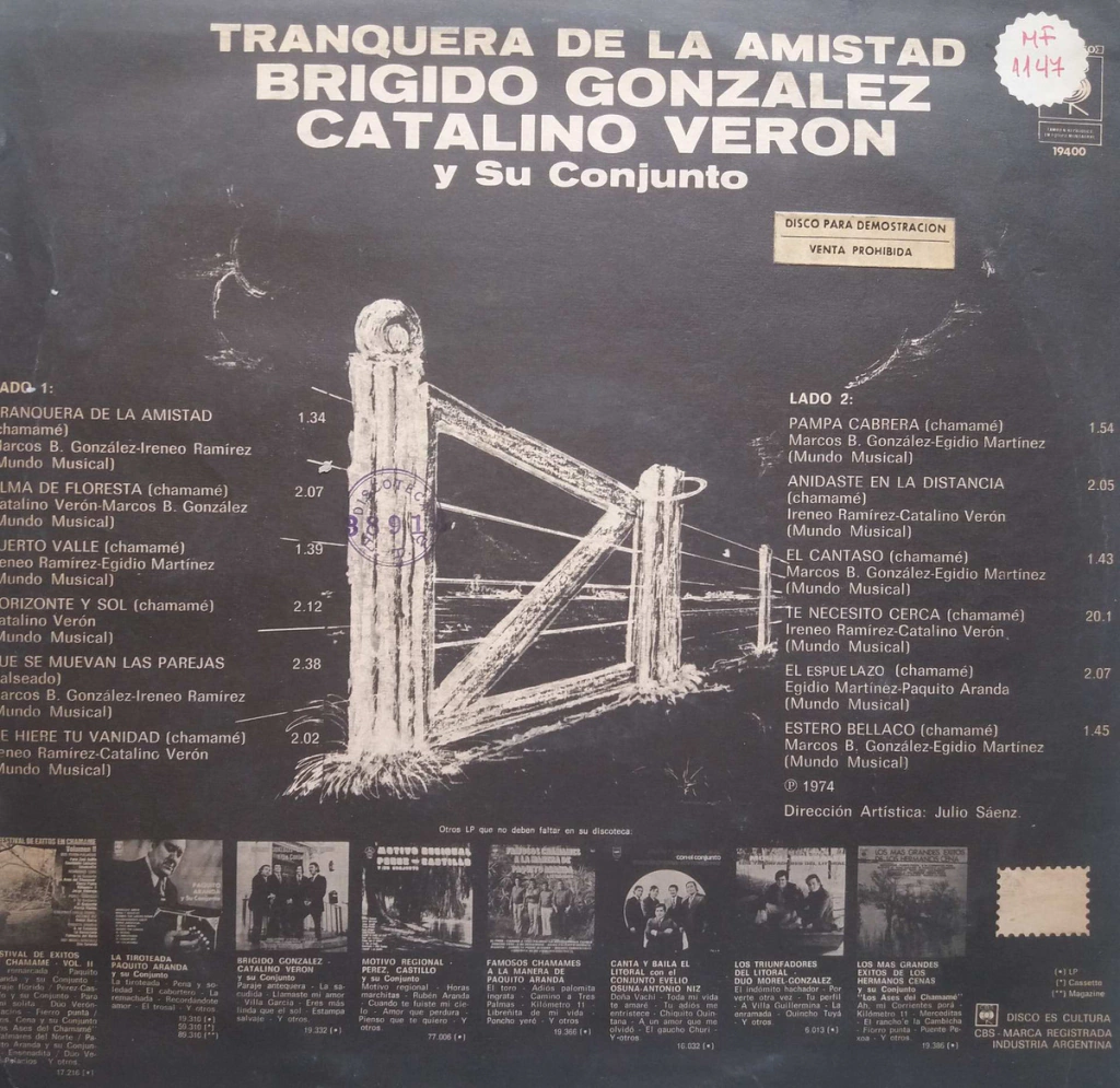 Brigido Gonzalez - Catalino Verón - Tranquera Amistad Lp