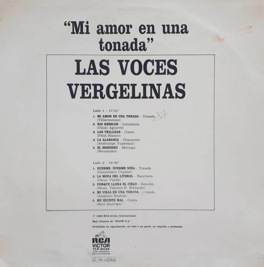 Las Voces Vergelinas - Mi Amor En Una Tonada Lp