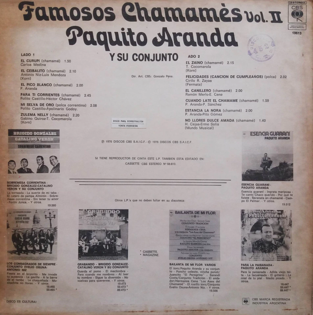 Paquito Aranda Y Su Conjunto - Famosos Chamamés Vol. Ii Lp