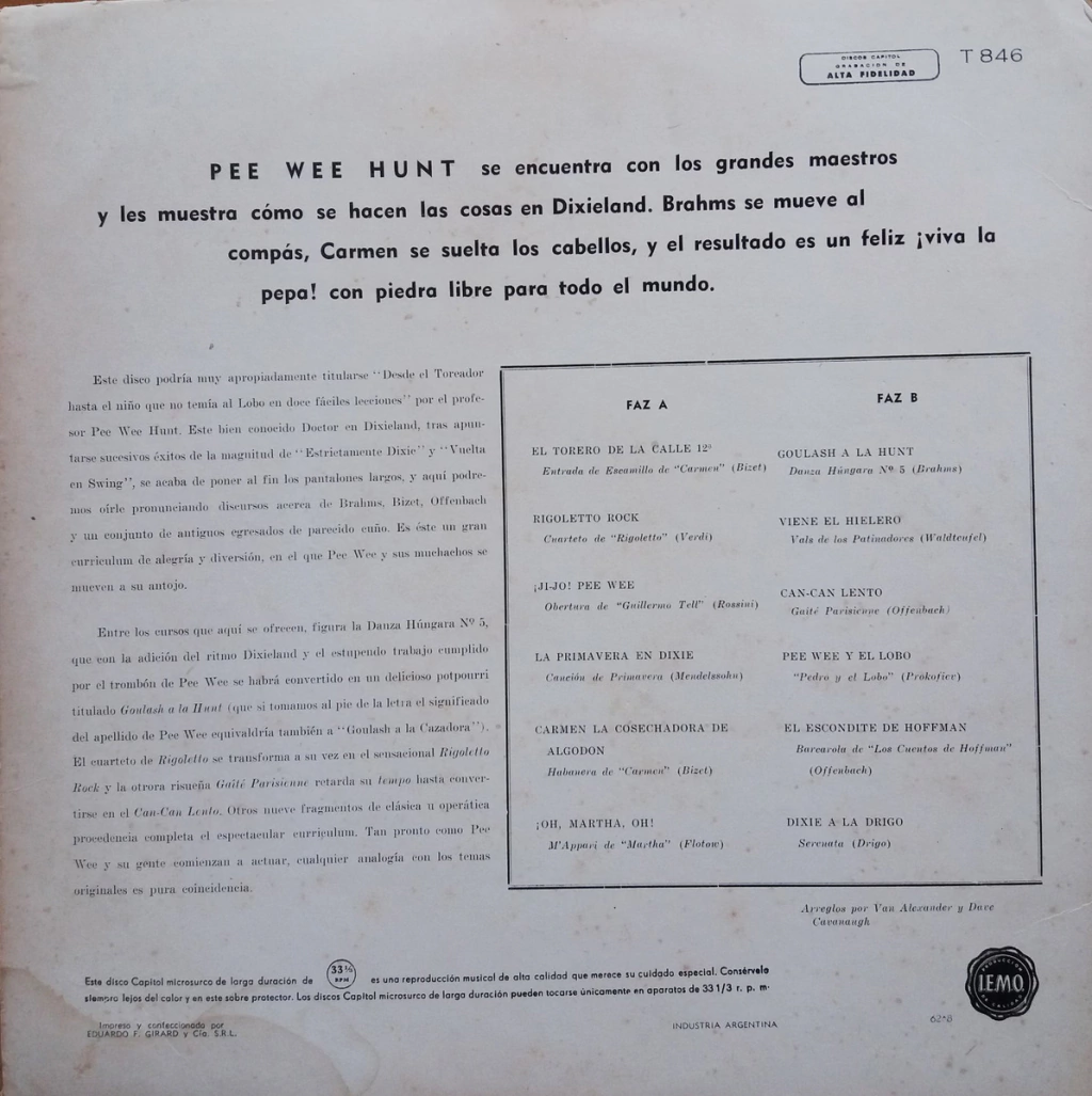 Pee Wee Hunt - Clásicos En Dixie Lp